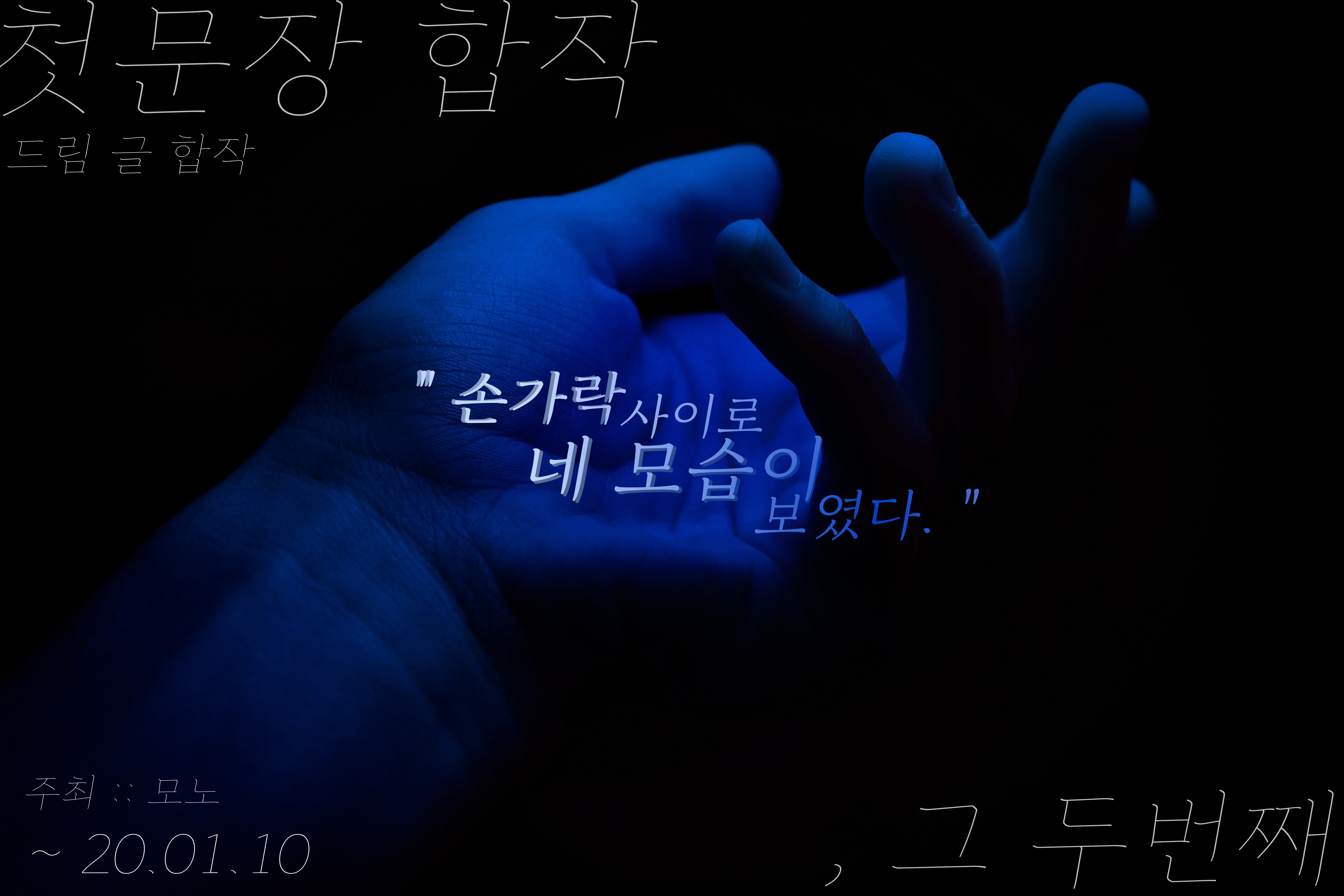 이번 드림합작테마는 " 첫문장 " 입니다. 주어진 문장으로 글을 시작하기만 한다면, 끝과 내용의 제한은 없습니다.