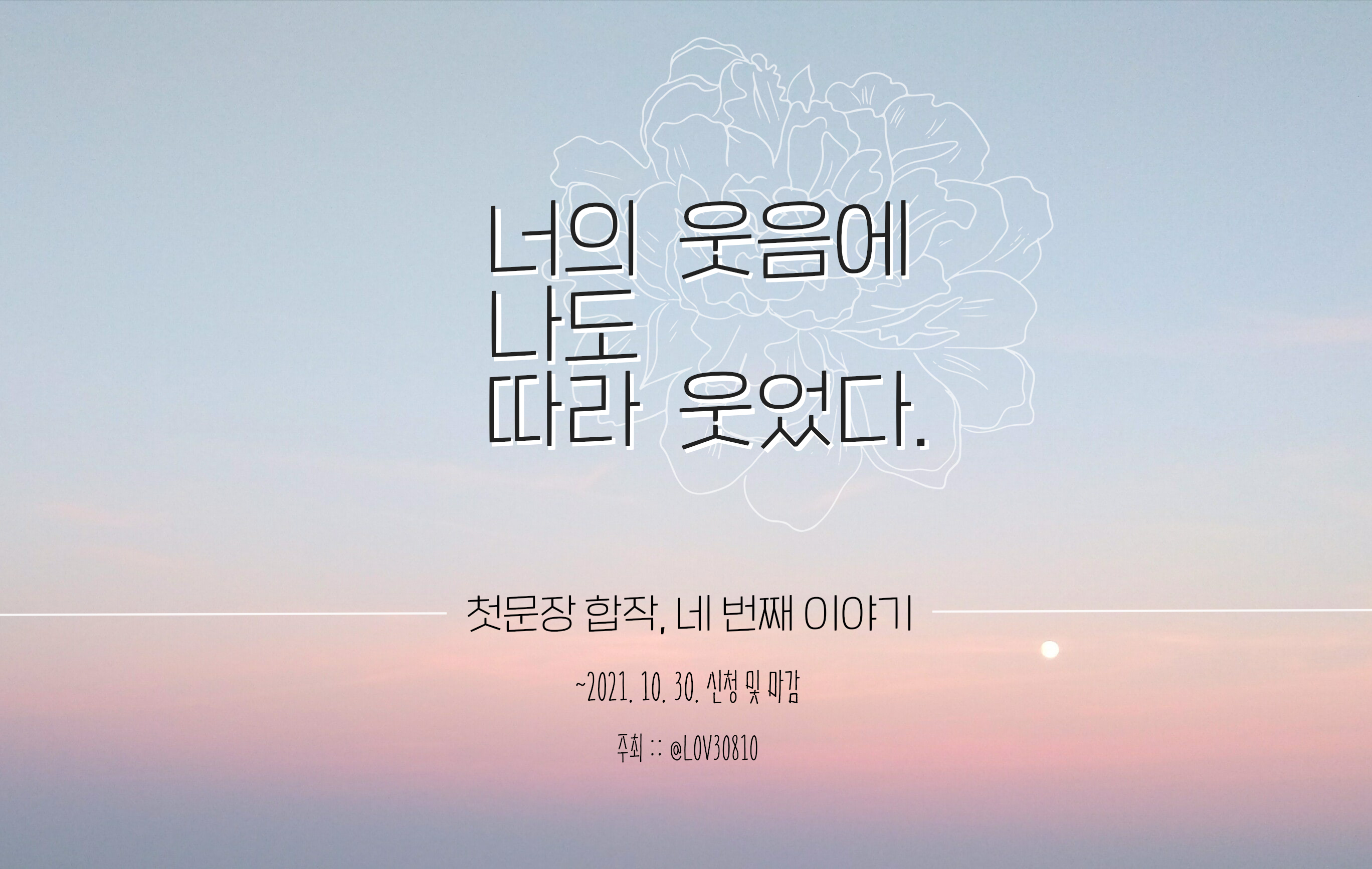 이번 드림합작은 " 첫문장 " 입니다. 주어진 문장으로 글을 시작하기만 한다면, 끝과 내용의 제한은 없습니다.